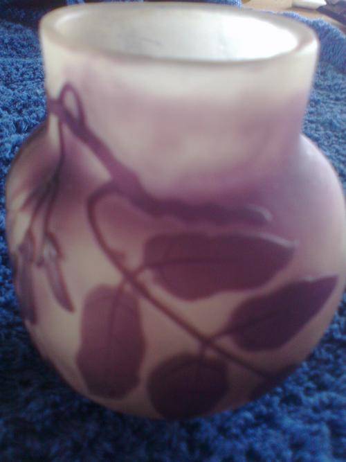 A Galle vase, signed, 9cm, unfortunately cracked, but still beautiful, and decorative. Postage R40.