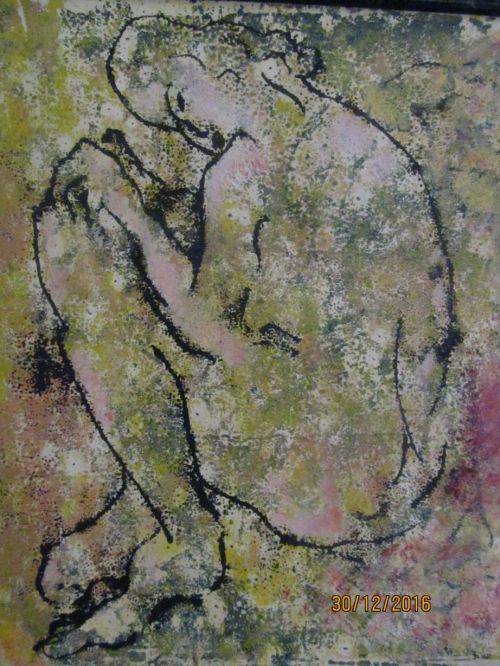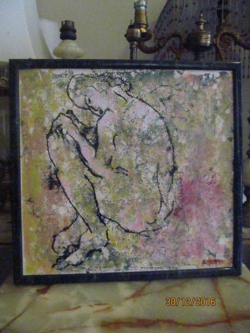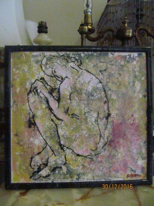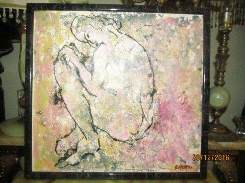 FRAMED MIXED MEDIA ON BOARD - CONTEMPORARY ART - NUDE by SA ARTIST LOUISE ALMON - SIGNED + DATED