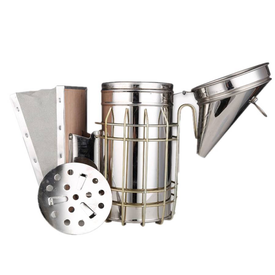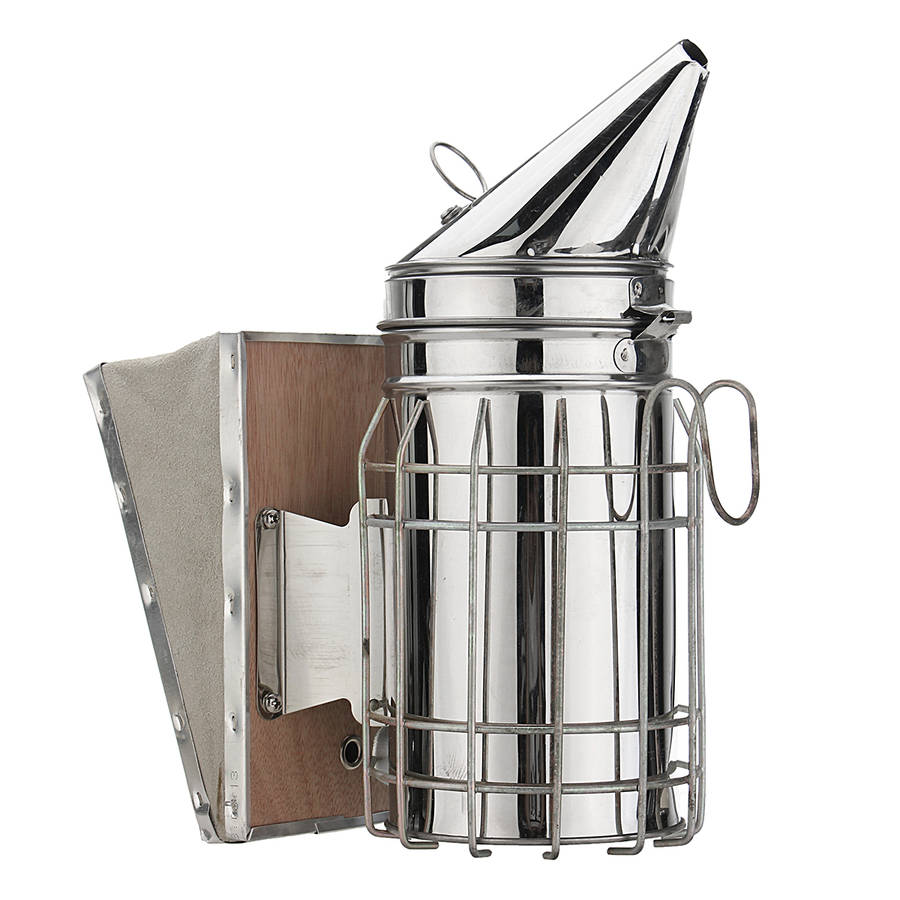 Galvanized Sheet Bee Hive Smoker with Heat Shield can calm bees and help you get into your hives.