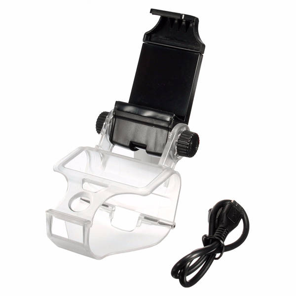 1. Material: Plastic 2. Color: Black & Clear 3. Suitable for: Any Phones and Devices up to 88mm width. (Any 3.5’’-6’’ Screen) 4. Perfect Attach on PS4 controller. 5. OTG Cable Connector: Micro USB2.0 5Pins