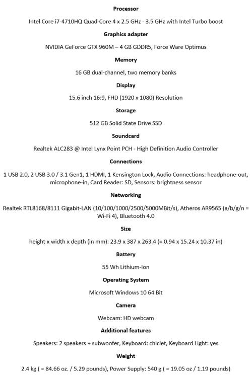 Intel® Core i7 Quad-Core | 16GB RAM| 4GB DDR5 GEFORCE GTX 960M GFX | 512GB SSD