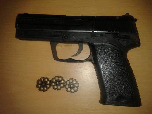 Cal 4.5mm Has a 8-Shot Rotary Clip,Rear sight adjustable for windage. Single and double action. Manual safety catch Shoots at a staggering 410 fps. Comes with 3 Clips and 3 12g CO2 capsule`s