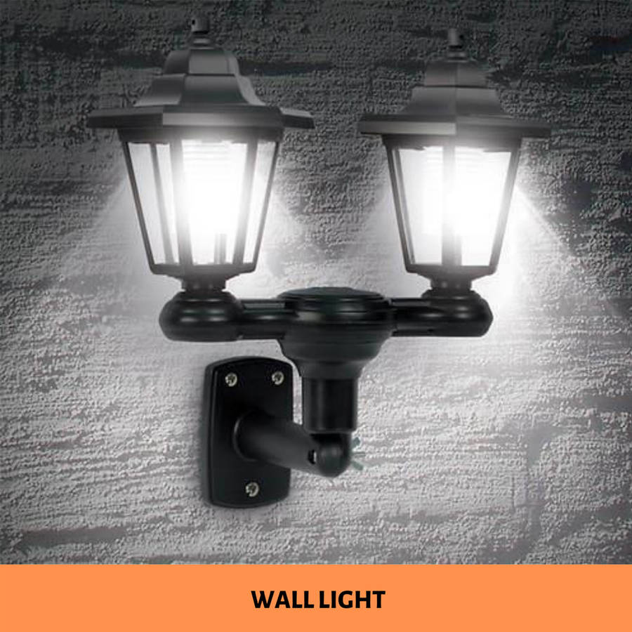 - Dual lanterns can be mounted on walls or installed on the lamp pole.