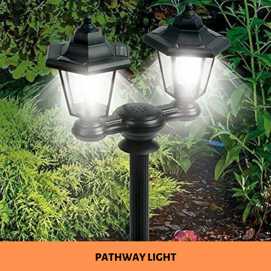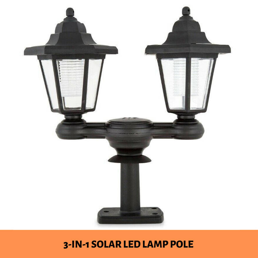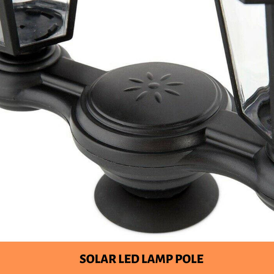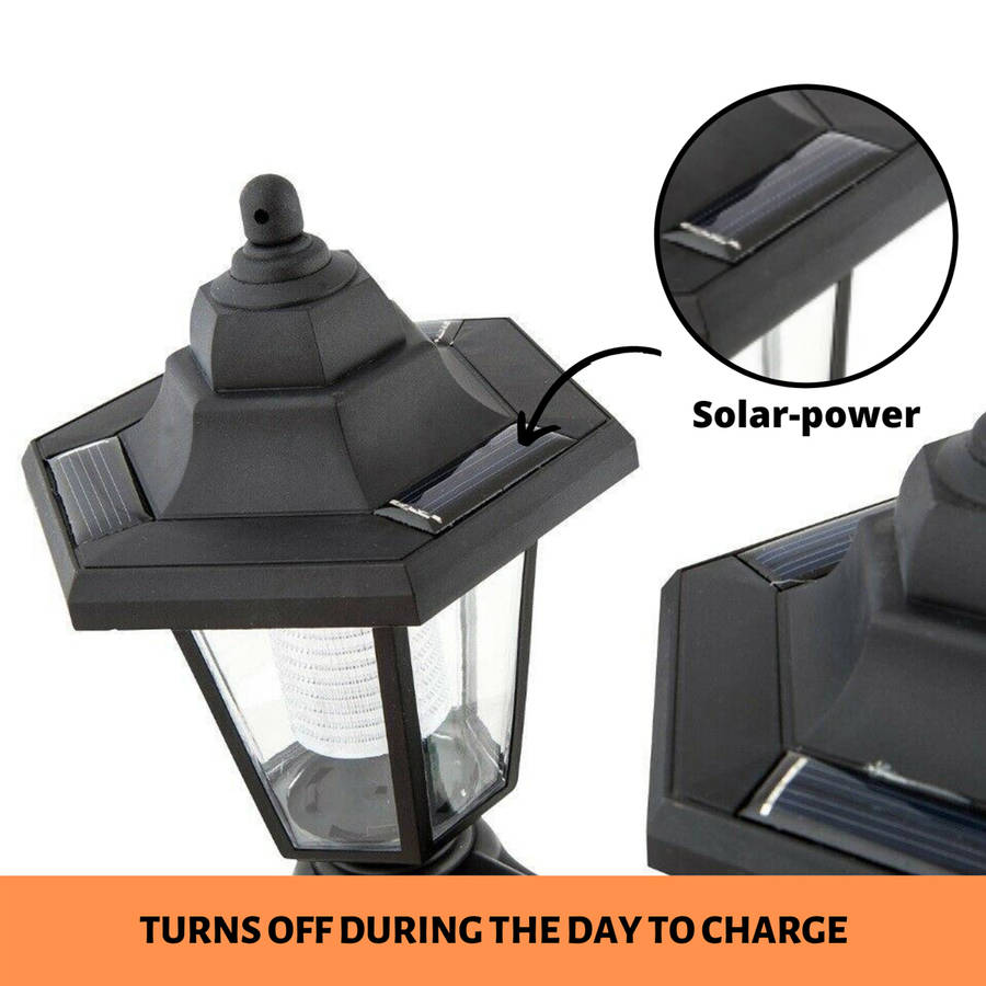 - Mount these dual lanterns on a wall, stake them in your garden, or install on their included lamp pole! These solar-powered LEDs automatically light up at night and turn off to charge throughout the day. Requires no battery changing or expensive wiring, and will add a unique and decorative feature to your outdoor area.