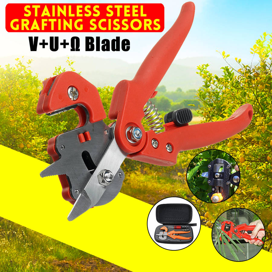 Name: Stainless Steel Grafting Scissors Model: E38194 Color:orange/red Materials: Stainless Steel Blade Type: V+U+ blade Features - The grafting speed is improved, the operation is simple, and the branch cutting speed is fast, It can greatly improve the grafting speed. - High survival rate, fast speed, smooth and flat cutting surface, closer interface between scion and stock, no gap in theory, so that the wound is easier to heal and improve the survival rate. - Because of the fast grafting speed, convenient and rapid use, it can save 40% time and energy compared with the traditional grafting method. - The use of grafting machine can effectively reduce production costs and improve the competitiveness of products. The blade can be replaced. Note -Please allow a bit error due to manual measurement. please make sure you do not mind before you bid. -The color may have different as the difference display, please understand. Package Included 1 x Grafting Scissors 2 x Extra Blades 1 x Wrench 1 x Screwdriver 1 x Bag