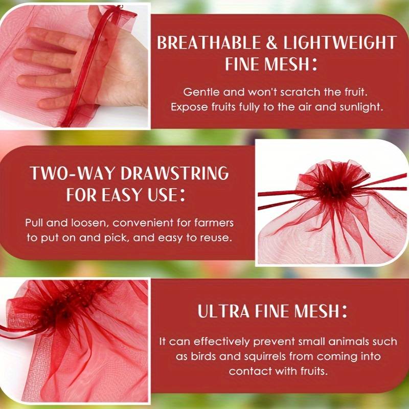 Garden protection net color Rotwein size 15x 20 cm color Rotwein:size 15*20 cm / 5,9*7,9 Zoll Garden protection net color Rotwein size 15x 20 cm 100pcs Burgundy Breathable Mesh Protective Covers for Fruits and Vegetables, Dur Color:Red Material:Polyester