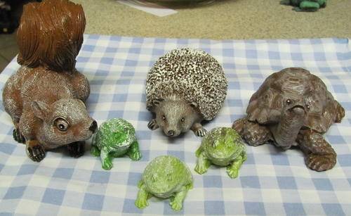 here we have a set which includes: 1 by squirrel 1 by tortoise 1 by hedge hog 3 by small frog.SHIPPING IS R35 added items at no extra shipping/ FREE SHIPPING ON ORDERS OFR350 OR MORE.please see my other items for some interesting goodies!