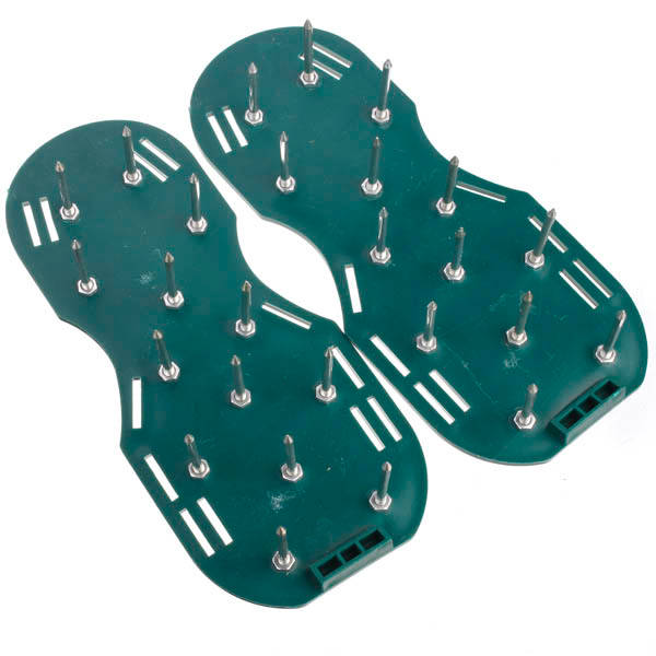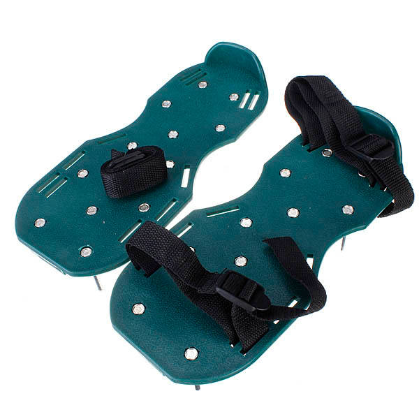 Gardening Grass Lawn Aerating Shoes Loosening Spikes It is a easy and economical way to improve the health of garden lawn. Aerating shoes comes with 13 hardened zinc plated and 5cm spikes on each shoes. The shoes are made from durable plastic with rear heel kick to knock off the dirt or grass build up. This will help the lawn get water, air and nutrients down to the roots zone of lawn. If you wear these while cutting the grass then you will be doing two jobs at once. Best helper for loosening the soil. Specification: Material: plastic + iron Color: green + black Shoe size: appr.29x13.2x6cm / 11.42x5.20x2.36" Shoelaces length: appr.65cm / 25.59" Feature: Easy to strap on Gives the roots much needed oxygen for grass 1330mm spikes on each shoe which can be unscrewed. One size fits all, straps to secure fitting Breath some life into the lawn Note: Keep out of the reach of children. Package Include: 1 x Lawn Shoe Aerator (Left) 1 x Lawn Shoe Aerator (Right) 4 x Black Shoelaces 26 x Nails