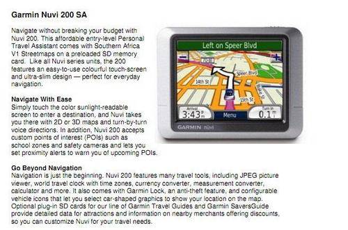 GARMIN NUVI 200 WIDE PLUS ALL NEW 2011.3 SA MAPS, TRACKS4 AFRICA, SPEEDCAMS, ETC. VALUE R5,000!!!