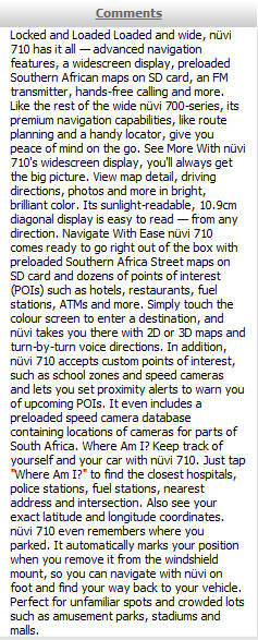 GARMIN NUVI 710 WITH BLUETOOTH, MP3 PLAYER, ETC. PLUS LATEST 2011 MAPS (VALUE R7,000.00)