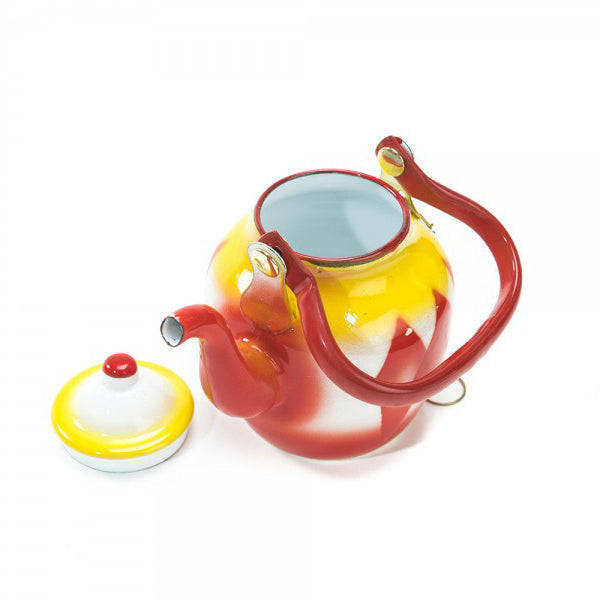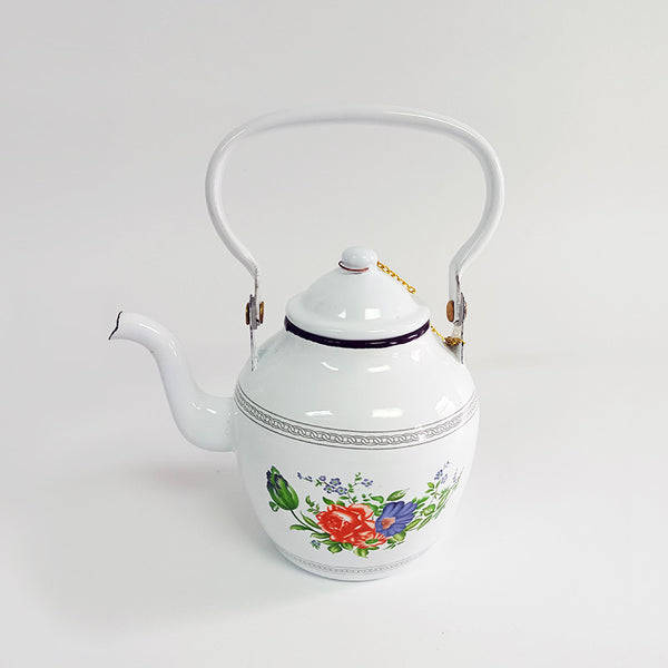Garnet Enamel Tea Pot White with Flower - 14cm/1.6LT / White with flower