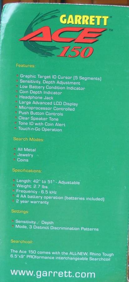 Review: https://metaldetectorlist.com/garrett-ace-150-review/