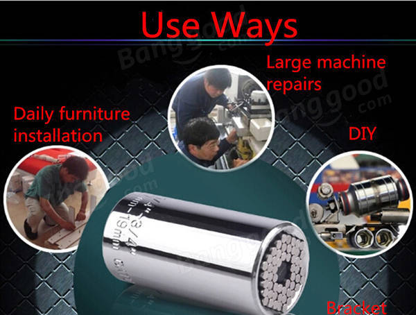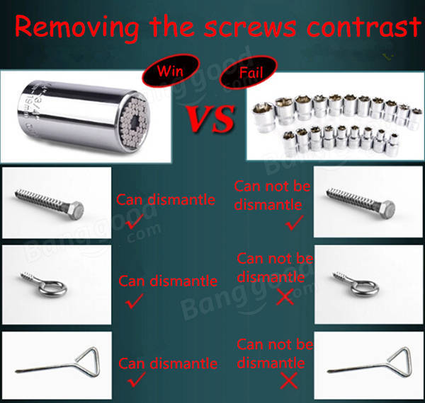 Can be disassembled various shapes nuts, screws, hooks, lag screws, and bolt heads ect. Self-adjusts to fit thousands of fasteners.