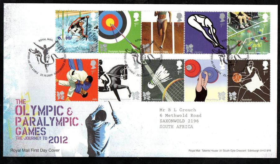 GB 2009 Olympics+Paralympic Games, London (first issue) first day cover (Tallents House)  CV GBP 9+ GB 2009 Olympics+Paralympic Games, London (first issue) first day cover (Tallents House)  CV GBP 9+ GB 2009 Olympics+Paralympic Games, London (first issue) first day cover (Tallents House)  CV GBP 9+