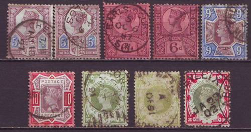 GB - QV 1887 Jubilee Issue Complete set plus 1s new colour and shades VF USED