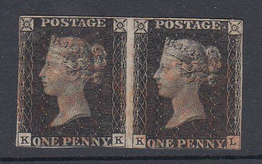 A RARE VERY FINE USED PENNY BLACK PAIR-"KK-KL " VERY LIGHT USAGE-MARGINS AS PER SCAN-FRASH AND LOVELY INVESTMENT PAIR NOT OFFERED TOO OFTEN !!
