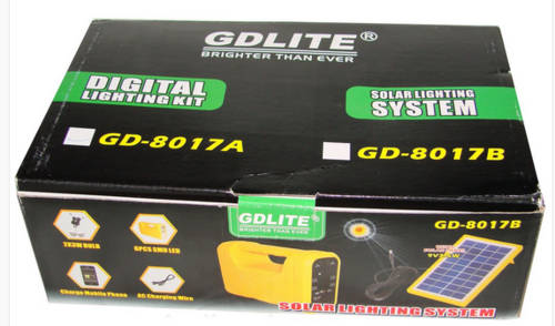 GD LITE SOLAR LIGHTING SYSTEM | 8017 | 3 X LIGHT BULBS | SOLAR PANEL | TORCH | CELLPHONE CHARGER