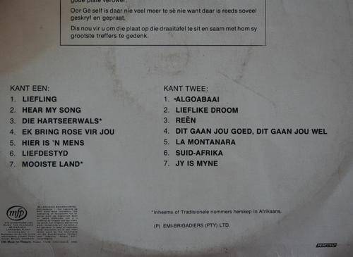 GE KORSTEN -- GROOTSTE TREFFERS -- VINTAGE AFRIKAANS VINYL LP RECORD