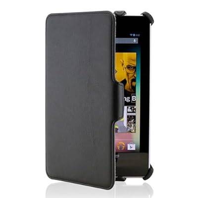 Protect your new Google Nexus 7 Asus tablet from scratches, dirt, and damages with this uniquely designed stylish and sleek black PU leather case with close sleep and open wake function. It ensures the tablet can be held securely without the risk of it slipping out accidentally with the sturdy snap on back cover that has 6 holding clips. And it can also be used as a stand with different viewing angles once you release the bottom 2 holding clips. The exterior is made of premium quality PU synthetic leather, and the interior lining is made of micro fiber material that cushions and shields the screen. The cover closes securely with a snap on clip, and it allows full access to all ports, buttons, and camera without the need to remove the case. Overall this case is designed to be a practical and graceful protector of your new Nexus 7 investment.