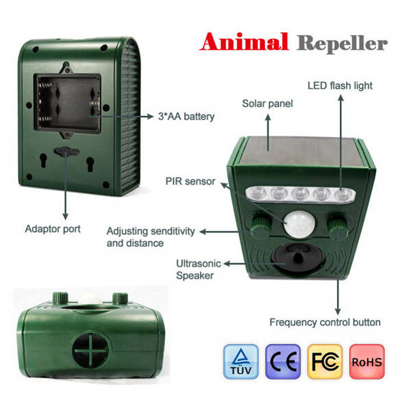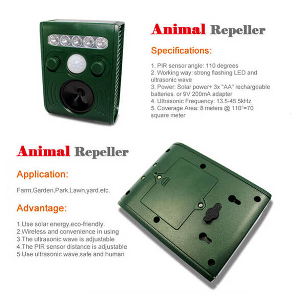 GeatHouse Solar Power LED Light Ultrasonic Animal Repeller Mouse Birds Snake Ex