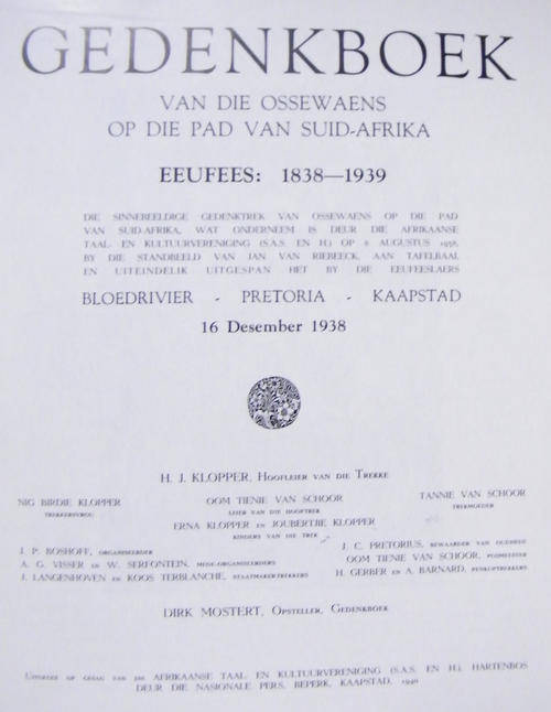 Gedenkboek van die Ossewatrek - 1838 - 1938 - Gepubliseer 1940