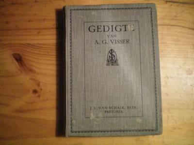 Description: Van Schaik, Pretoria. 1929. Sesde druk. Hardcover. Condition good. Boards have a few water marks, corners are bumped. Internally clean and tight. Voorwoord to Eerste druk and " In Memoriam" By Eugene Marais. Andries Gerhardus Visser (Julie 1878 - 10 Junie 1929). Opposite frontispiece photo of Visser.
