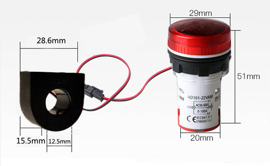 22MM AC50-500V 0-100A Digital LED Voltmeter Voltage Meter Indicator Light Ammeter Ampermeter Current Tester 2 In 1 With CT
