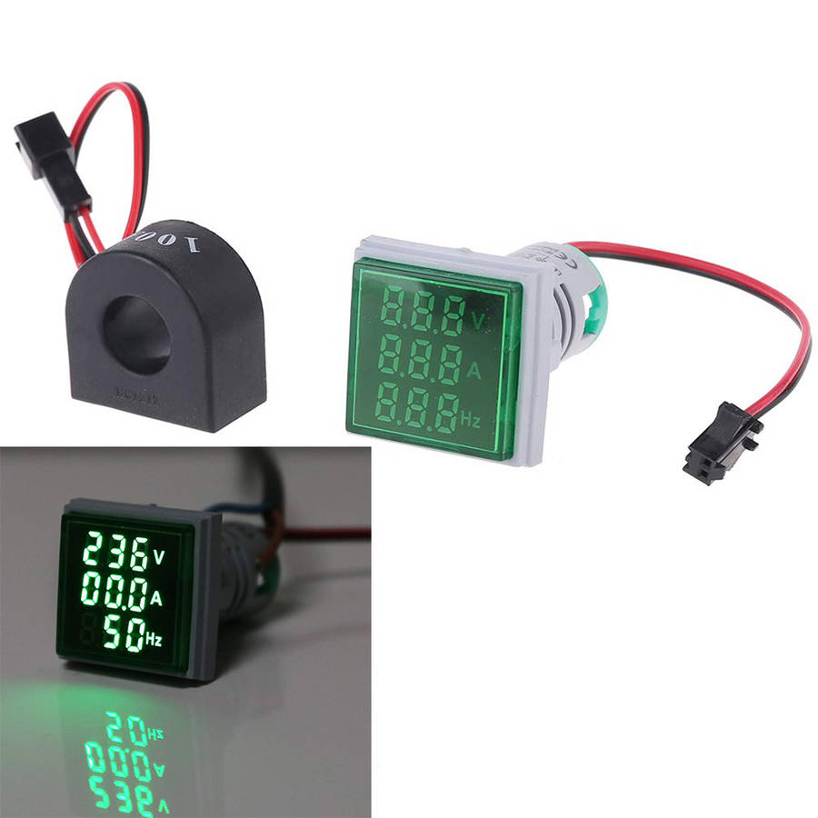 Specifications: Material: ABS Electrical components Color: Red/White/Blue/Green/Yellow Voltage Measuring Range: AC 60~500V Current Measuring Range: 0~100A Frequency Measuring Range: 20~75Hz Panel Size: 31*31mm / 1.22*1.22in Installation Diameter: 20.3mm / 0.8in Package included: 1 x AC Voltmeter Ammeter Frequency Meter 3 in 1 Indicator 1 x Current Coil Transformer