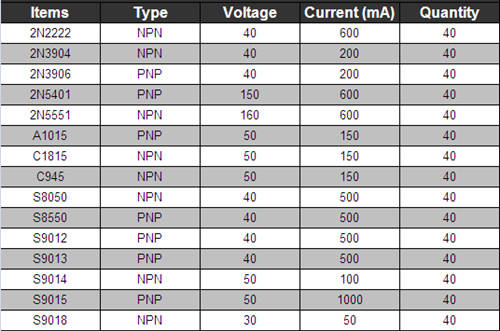 1 x 15 Value 600pcs transistor TO-92 assortment box kit
