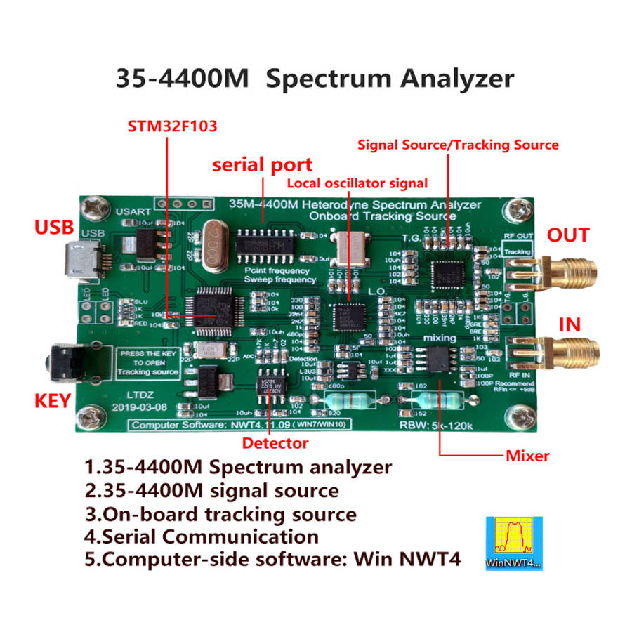 | Product | Geekcreit Spectrum Analyzer USB LTDZ_35-4400M_Spectrum Signal Source with Tracking Source Module RF Frequency Domain Analysis Tool |
