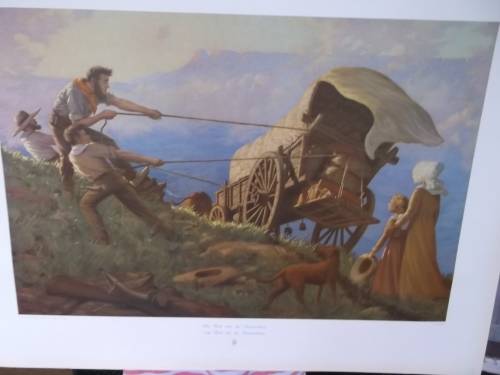 Hierdie is die laastes van die laastes wat deur Schweikerdt's in 1938 in Duitsland laat druk is vir die 100jarige herdenking van die Groot Trek. Die prent is in 1938 deur W H Coetzer geskilder.