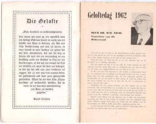 Geloftedag - 1962 , Gedenkprogram