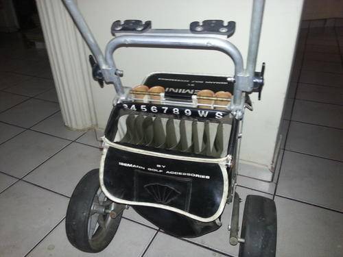 GEMINI GOLF CART BY ISEMANN GOLF ACCESSORIES - THIS ALSO INCLUDES A PLASTIC COVER THAT PROTECTS YOUR GOLF CLUBS FROM THE RAIN WHILE YOU PLAY YOUR GAME. THIS DOES FOLD DOWN BY THE HANDLES FOR EASY STORAGE. THIS IS IN VERY GOOD CONDITION.