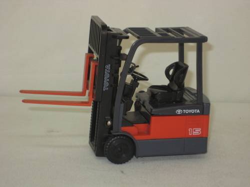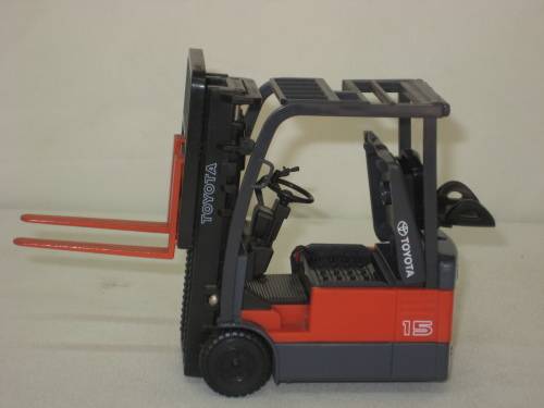 Model displayed is a Genco Toyota 15 Forklift + Pallet - Scale 1/23 No. 7BE15