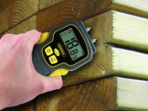 Generals ultra-sensitive Digital Moisture Meter easily detects hidden leaks in wood; concrete; plaster and carpet. Providing accurate moisture level readings make this moisture meter great for new home inspections; locating roof leaks or even selecting dry lumber at the yard. Ideal to use in woodworking; building construction; agriculture restoration and floor-laying. Used to check wood; drywall and concrete before painting; sealing or treating and locate and identify water leaks in roofs; floors and walls. Features LED display; wide measuring range; strong stainless steel pins; audible alarms and battery status indication. Display will show the moisture content in Percent Moisture Content directly. Ergonomically designed and CE approved.