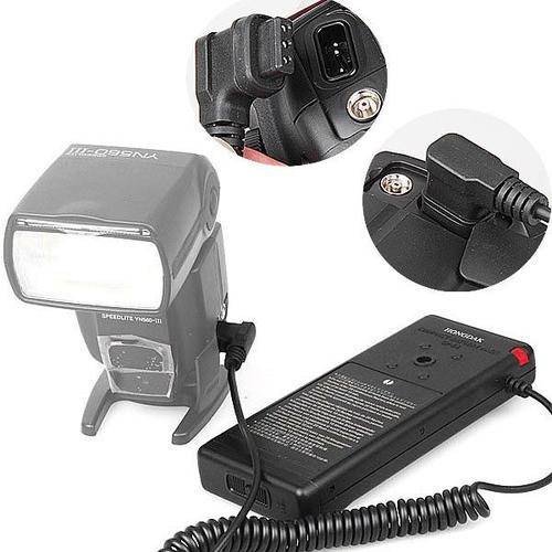 Provides increased external power to your camera flashes; Suitable for using in continuous flash; Powered by 8 AA batteries (not included);