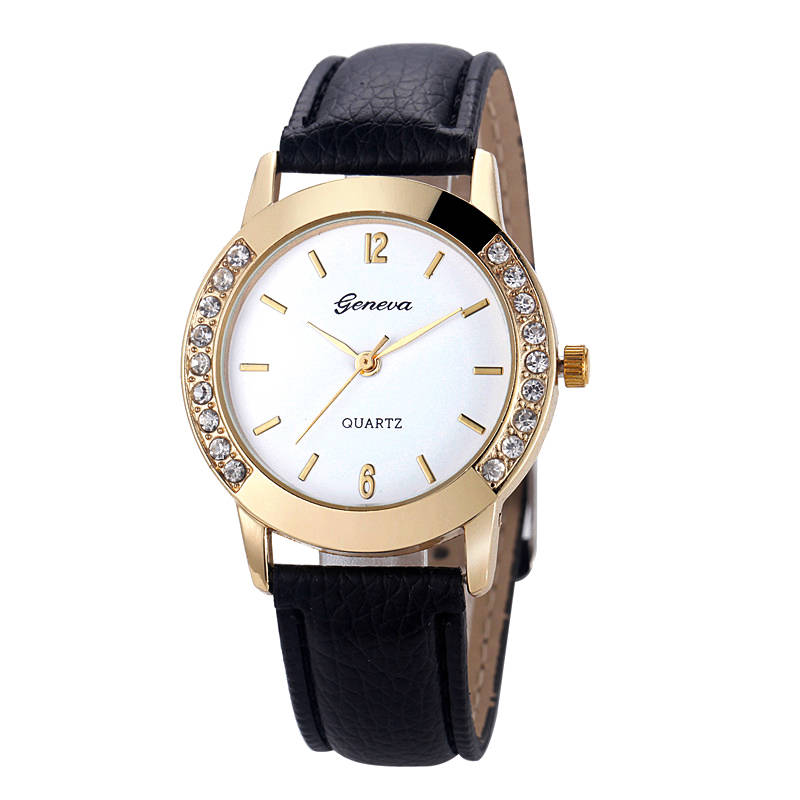 Geneva Luxury Women Watch Golden Diamond Leather Analog Quartz Wrist Watch Gift