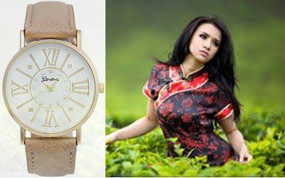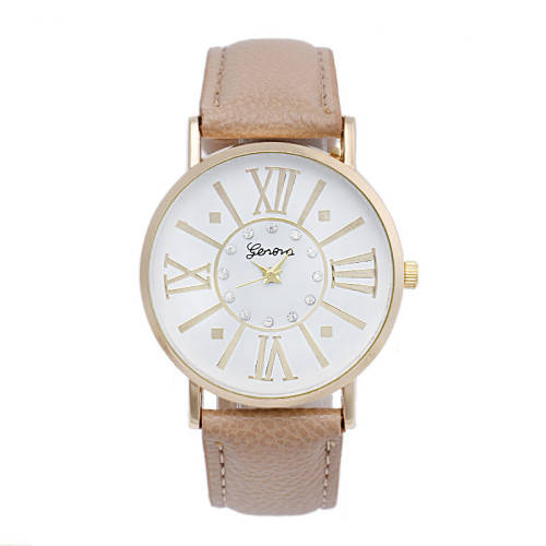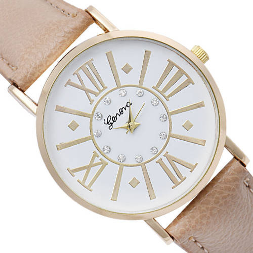 GENEVA WOMANS FASHION WATCH WITH DIAMANTE, ROMAN NUMERALS AND PU LEATHER BAND