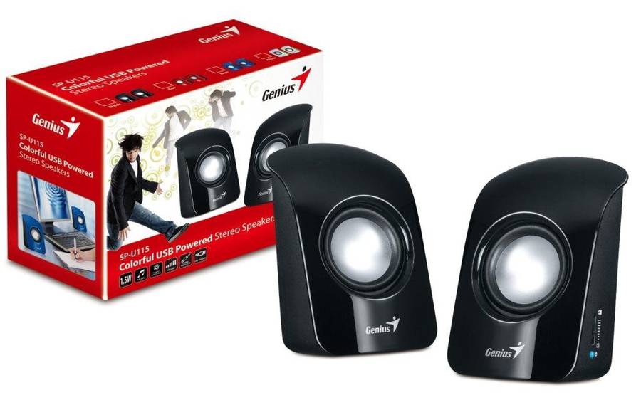Don¿t be limited by a power adapter, Genius releases cute mini speakers, SP-U115, whose power is supplied through a USB port from a desktop/notebook. They use 50mm speaker drivers for loud and clear sound performance for a total of 1.5 watts RMS. It has a convenient knob on the side to adjust the volume. Just insert the USB plug to a PC/notebook for power and the 3.5mm audio plug into music playback device, such as a PC, notebook, MP3 or CD player and enjoy music with the SP-U115.