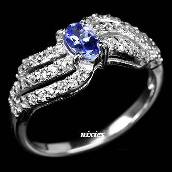 GENUINE 0.50T TANZANITE MICRO PAVED 925 STERLING SILVER RING - SIZE 8.5(R)