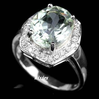 GENUINE 3.2T GENUINE GREEN AMETHYST 925 STERLING SILVER RING - SIZE 6.25(N)