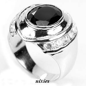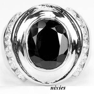 GENUINE 5.9CT BLACK SPINEL & CZ 925 STERLING SILVER RING - SIZE 8(Q)