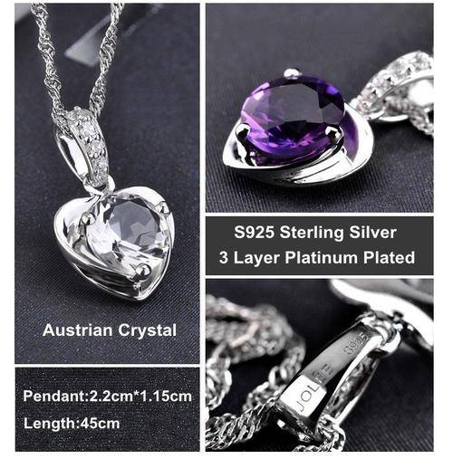 GENUINE 925 Silver Crystal Necklace Round Shaped, Platinum Plated