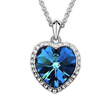 GENUINE 925 Silver Ocean Crystal Necklace, Platinum Plated