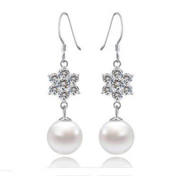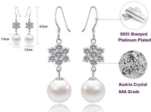 Genuine 925 Sterling Silver ,Dangling Flower and pearl earring , Platinum Plated
