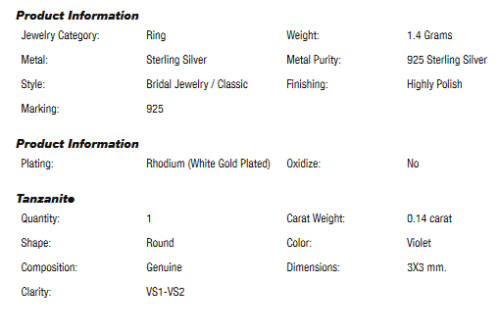 Genuine 925 Sterling Silver Ring - 0.14ct Genuine Tanzanite Heart Design - Size 5 / K