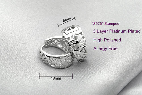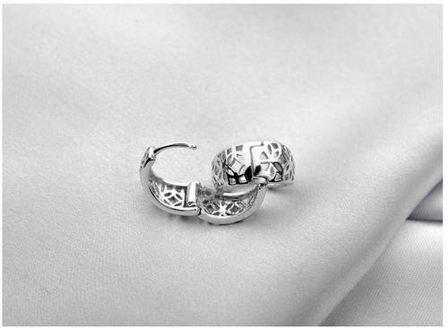GENUINE 925 STERLING SILVER, SMALL HOOP WITH FLOWER DESIGN EARRINGS