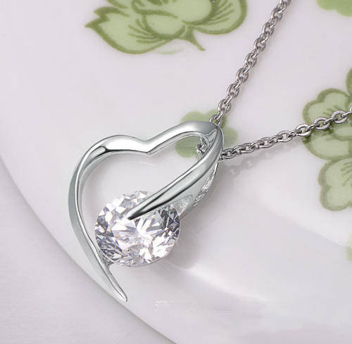 Genuine 925 Sterling Silver Zircon Heart Pendant Necklace