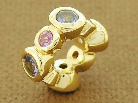 This Beautifully designed and QUALITY BEAD has been crafted from 9ct SOLID YELLOW GOLD - NOT PLATED ! ! This bead has been set with NATURAL Tanzanites that are spaced by NATURAL Pink Sapphires in between. It is sure to add a beautiful dash of NATURAL Colour to your bracelet ! ! This bead will easily slide onto your bracelet or Necklace.