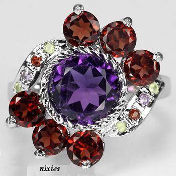 GENUINE AMETHYST & GARNET 925 STERLING SILVER RING - SIZE 9(S)